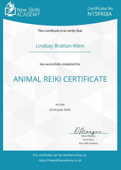 Mae gan Sigi Ddiploma Meistr Reiki ers 2010 ac mae'n canolbwyntio'n bennaf ar les anifeiliaid. Roedd hi'n treulio amser yn trosglwyddo ei gwybodaeth i mi. Yn anffodus bu farw yn 2020 ac er nad wyf byth yn disgwyl cael yr anrheg a wnaeth, fy nod yw gallu parhau â’i gwaith da er cof amdani.